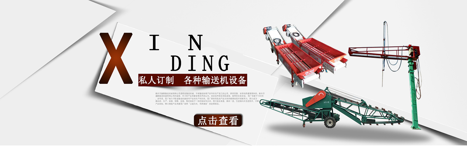 衡水市鑫鼎輸送機械有限公司是糧食輸送機械、平板輸送機等產(chǎn)品專業(yè)生產(chǎn)加工的公司,擁有完整、科學的質量管理體系。衡水市鑫鼎輸送機械有限公司的誠信、實力和產(chǎn)品質量獲得業(yè)界的認可。歡迎各界朋友蒞臨參觀、指導和業(yè)務洽談。 我廠創(chuàng)建于1980年,多年來,我廠致力于糧食輸送機械系列產(chǎn)品的生產(chǎn)和開發(fā)。我廠具有優(yōu)良的產(chǎn)品開發(fā)和雄厚的技術創(chuàng)新實力,使之成為集科研、生產(chǎn)、檢測、銷售、安裝、售后服務于一體的綜合性企業(yè),我們追求卓越,崇尚一流,引進國內外先進技術,不斷產(chǎn)品結構,精心鑄造產(chǎn)品質量我廠堅持“以誠為本,優(yōu)質服務”的經(jīng)營理念。。積極拓展市場,贏得了廣大客戶的信賴和一致好評。產(chǎn)品暢銷山西、山東、遼寧、黑龍江、吉林、北京、天津、內蒙古等28個省、市、自治區(qū)。